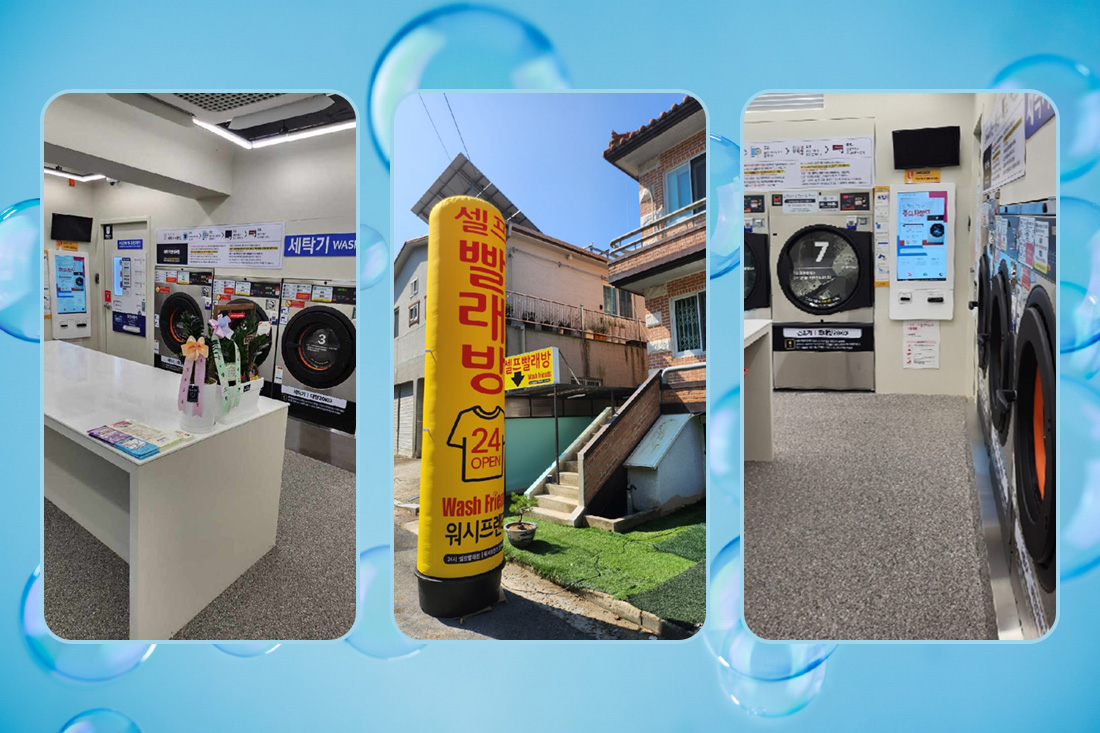 3쾌적한 공간: 쾌적한 대기 공간과 넉넉한 세탁기 수로, 번잡함 없이 편안하게 이용할 수 있습니다.
